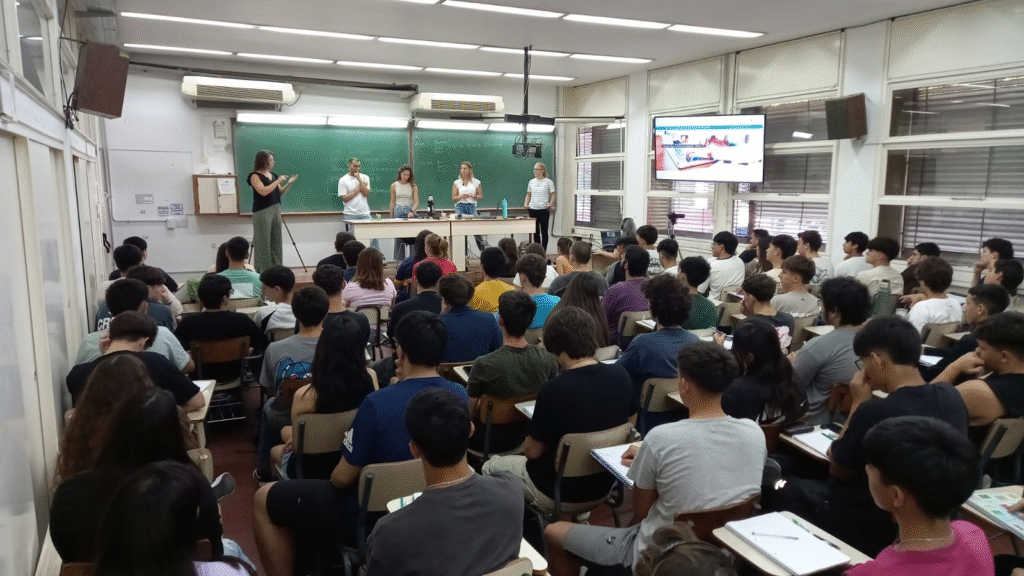 Durante su mensaje, el Decano destacó la relevancia de esta nueva etapa en la trayectoria académica de los estudiantes, subrayando la importancia del compromiso y la constancia para alcanzar los objetivos propuestos. Además, remarcó el rol de la Facultad en el acompañamiento permanente a lo largo de la carrera.