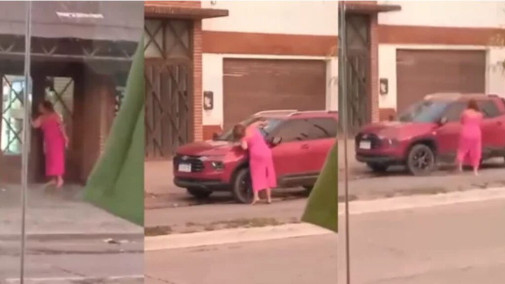 Mientras el hombre se encontraba en su puesto de trabajo, la agresora, Ana Rosmeri Peñalo, se mostraba alterada, a plena luz del día, descalza, rodeó una camioneta roja con un martillo en la mano, intentó causar daño de varias maneras y ante la falta de resultados, golpeó directamente sobre el vidrio del parabrisas donde logró varias abolladuras.
