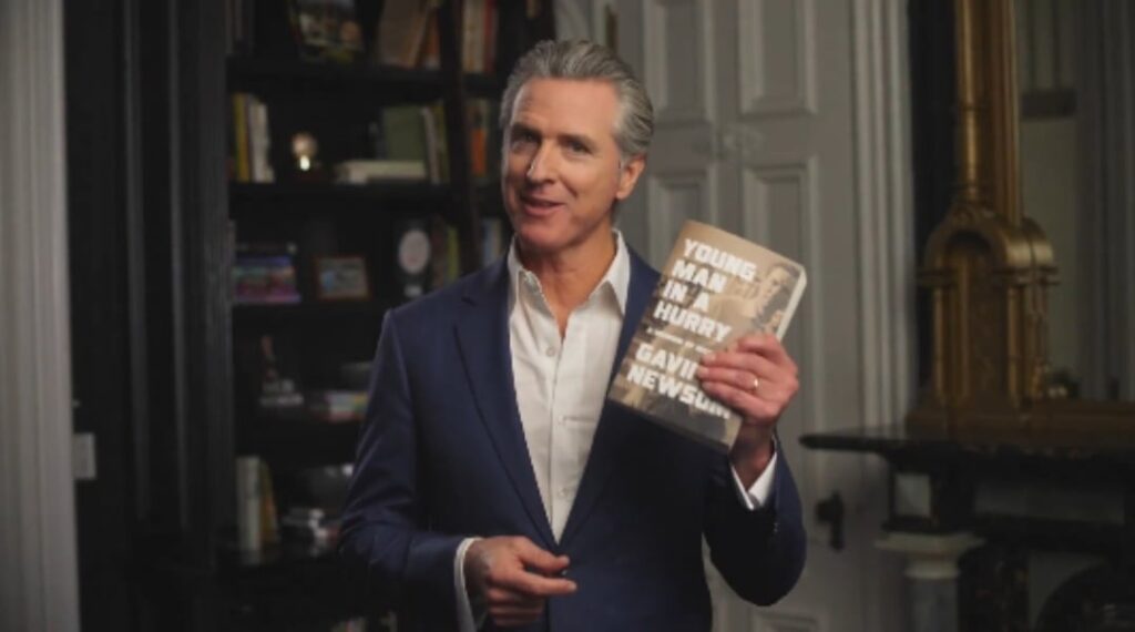 La autobiografía de Gavin Newsom, Young Man in a Hurry: A Memoir of Discovery (Joven con prisa: Memorias de descubrimiento, en español) se publicará el 24 de febrero, y aunque no ha salido a la venta, ya hay ciertos pasajes que toman relevancia, como el relato sobre la muerte de su madre, Tessa Thomas Newsom, por eutanasia.