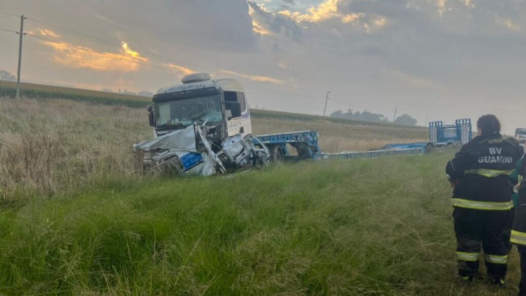 El siniestro se registró esta mañana, alrededor de las 7.30, en el kilómetro 213 (la semana pasada había sido en el 212), cuando colisionaron un utilitario Renault Kangoo perteneciente al municipio de Guaminí y un camión Scania que circulaba en sentido contrario.