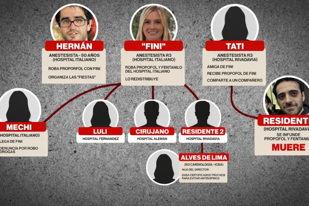 El expediente reconstruyó vínculos entre profesionales del área de Anestesia, explicaron en LN+; la investigación ahora se centró en el recorrido de medicamentos fuera del ámbito hospitalario; los nombres bajo la lupa en un entramado aún en análisis