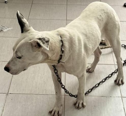 En cuanto al can hembra raza dogo mestizo pelaje blanco fue localizado con vida, encontrándose a la espera de correspondiente examen veterinario y demás de las diligencias periciales de rigor.