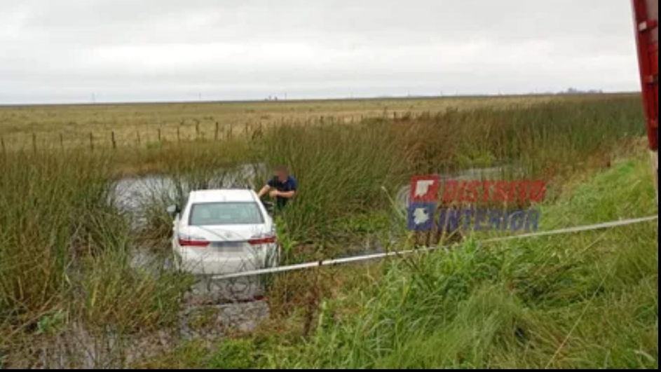 Debido al estado del terreno, completamente cubierto de agua, el automóvil no pudo ser removido por sus propios medios, por lo que fue necesaria la intervención de un camión jaula que logró arrastrarlo nuevamente hasta la ruta.