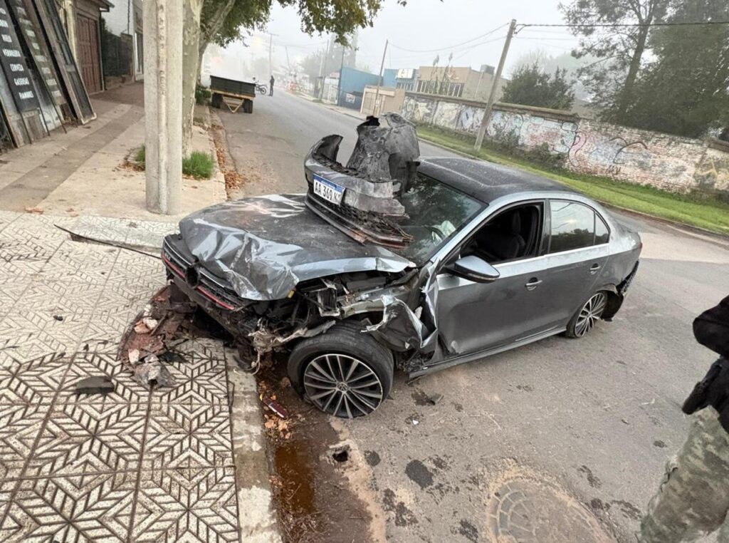 El conductor perdió el control de la unidad e impactó de lleno contra el pilar de luz de un clásico negocio ubicado en esa esquina. El choque fue de tal magnitud que el frente del auto quedó destruido, afectando también parte de la estructura eléctrica del comercio.