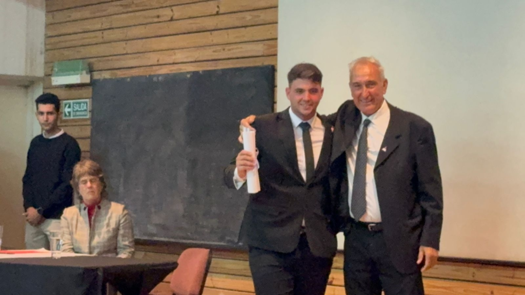 Momento de mucha emoción se vivió cuando el vicedecano Sergio Gentili fue el encargado de entregarle el diploma a su hijo Tomás Gentili, quien se convirtió en nuevo médico veterinario. El abrazo entre ambos reflejó no solo el logro académico, sino también el orgullo personal en una escena que conmovió a todos los presentes.
