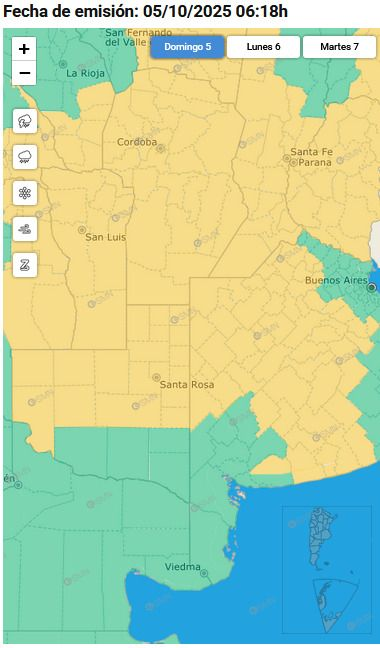 Según detalló el organismo nacional en su página web, «el área fue afectada por vientos del sector sur con velocidades entre 35 y 50 km/h, y ráfagas que pudieron alcanzar localmente los 75 km/h.».