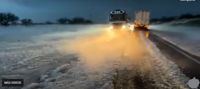 Las autoridades solicitan circular con máxima precaución en el tramo de la Ruta Nacional 152 debido a la presencia de hielo y granizo sobre la calzada y las banquinas. Algo similar ocurrió sobre la Ruta 35.