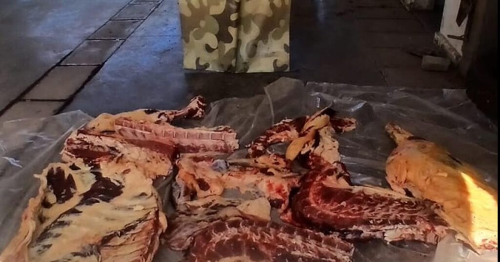 Durante el control vehicular, efectivos policiales identifican un vehículo transportando trozos cárnicos sin la debida autorización ni documentación. La investigación reveló que los implicados intentaban justificar la procedencia de la carne como un pago por servicios, aunque el propietario del campo rural «El Pocito» no reconoció a estas personas ni autorizó el faenamiento.