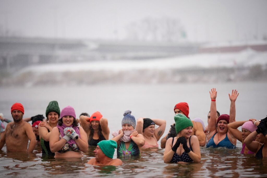 Mientras de este lado del mundo nos preparamos para buscar piletas, hacer alguna escapada al mar o al río, poner a punto aires acondicionados e implorar a los altares de todas las creencias que los cortes de luz no sucedan (y si suceden, que sean breves), los habitantes de Varsovia dan por iniciada la temporada de natación en aguas frías. Quienes sonríen en esta foto –de un modo incomprensible para cualquier habitante de regiones más cercanas al Ecuador– lo hacen en medio de las gélidas aguas del río Vístula. Los beneficios de este tipo de inmersión son ampliamente promulgados por nórdicos y eslavos: cuestión de activar el organismo, estimular sus funciones, templar –quizás– el carácter. Por lo que se ve en este grupo de hombres y mujeres de estilos tan diversos como los colores de sus gorros de lana, la diversión también podría formar parte del plan.