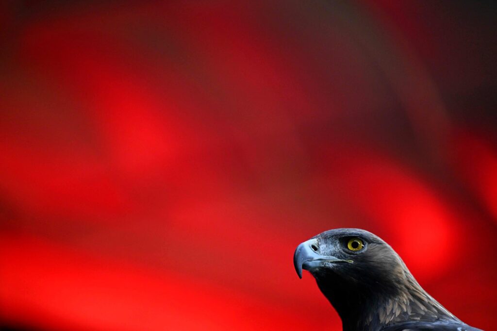 Son pocos los datos que acompañan esta foto. Se nos informa que el águila retratada se llama Atila y es la mascota oficial del Eintracht Frankfurt. El mismo día en que se registró la imagen, el equipo alemán se preparaba para un partido de la UEFA Champions League. No sabemos mucho más, sobre todo ignoramos si ese resplandor rojo que asoma detrás del ave corresponde a un atardecer notablemente intenso, a una bandera o a un inesperado efecto de iluminación. Lo cierto es que el resultado es poderoso, e independiente de algún que otro dato accesorio que se pueda averiguar. Por caso, que el águila tiene dueño: un tal Norbert Lawitschka, propietario de un criadero en Coburgo. Y que algún jugador del Frankfurt asegura que ciertos partidos no hubieran sido lo mismo sin la presencia, entre protectora e intimidante, del ave rapaz.