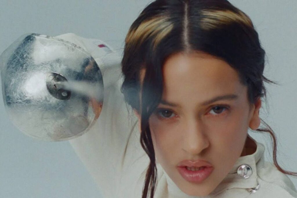 En la imagen de portada de YouTube, a Rosalía aparece vestida como esgrimista, look que repite hacia el final por decisión de su hermana Pili Vila Tobella, directora creativa del clip.