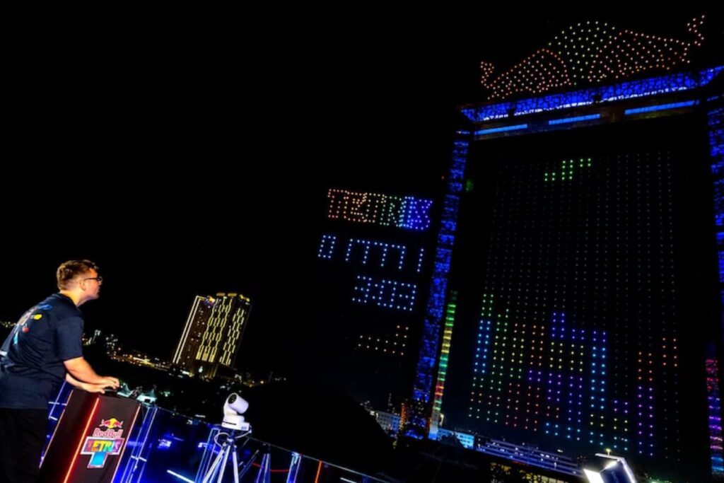 El momento cumbre de la jornada se vivió cuando la estructura del Dubai Frame se transformó en un tablero gigante de Tetris. Sobre los 150 metros del edificio, una flota de 2.800 drones representó en tiempo real las jugadas de la final global. Las icónicas piezas de Tetris fueron formadas “pixel a pixel” por estos dispositivos, permitiendo a la multitud seguir la caída y rotación de los bloques en el cielo. En total, el espectáculo completo, que ajustó cada detalle visual a la acción del juego, utilizó más de 4.000 drones.