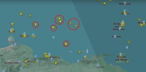 Ocho aviones militares de Estados Unidos volvieron a volar cerca de las costas de Venezuela