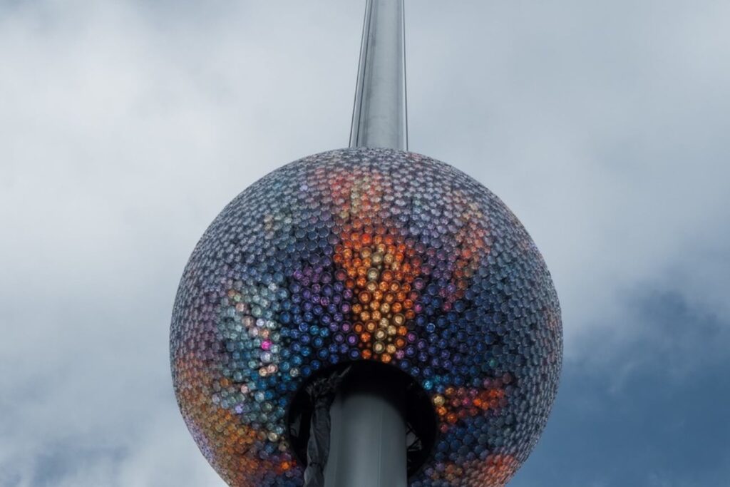 La nueva estructura es una proeza de la ingeniería y el diseño: mide 3,8 metros de diámetro y alcanza un peso superior a los 5.400 kilos,. Rompiendo con la estética de los cristales triangulares utilizados desde 1999, la “Bola de la Constelación” está compuesta por 5.280 cristales circulares Waterford. Estos cristales se presentan en tres dimensiones distintas (3,8 cm, 7,6 cm y 10 cm) y están integrados con discos de luz LED para un brillo inigualable.