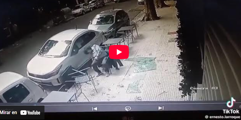 «Estábamos dentro del local y escuchamos un estruendo importante. Pensamos que había sido un accidente de autos. Todos los empleados salimos para ver qué había pasado y vimos la escena: la mesa tirada en el piso y el cliente sentado semi inconsciente», contó Lautaro, el cocinero del bar.