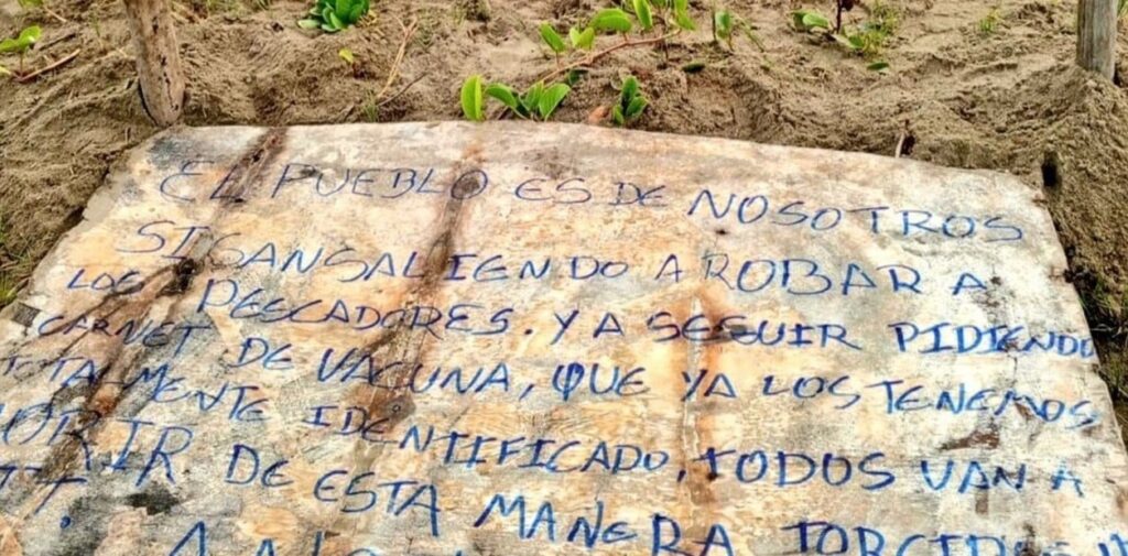 El mensaje advertía: “El pueblo es de nosotros. Sigan saliendo a robar a los pescadores y a seguir pidiendo carnet de vacuna, que ya los tenemos identificados”.