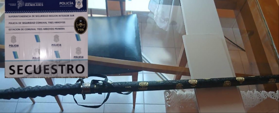 En la localidad de Tres Arroyos, provincia de Buenos Aires, el domingo, después de la medianoche, un hombre de 67 años fue detenido por agredir y amenazar a su vecina, una joven de 23 años. El hombre le golpeó la cara y la amenazó con un arma blanca, más precisamente con una katana, en un violento episodio sucedido en una vivienda sobre calle 20 de Abril al 1000. Personal de la Comisaría Primera de Tres Arroyos detuvieron al agresor.